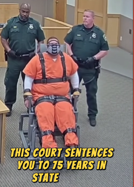In a tense courtroom scene that has now gone viral, a man was sentenced to 75 years in state prison for a string of violent offenses, marking the end of a long and dramatic legal battle that drew national attention. The defendant, restrained in a full safety chair and wearing an orange jumpsuit, listened as the judge handed down one of the toughest sentences allowed under state law.
